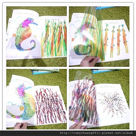 在海馬先生孵化寶寶的旅程中育到了許多朋友,也可以看到海馬先生的肚子越來越大(可以讓孩子比較細節的不同)