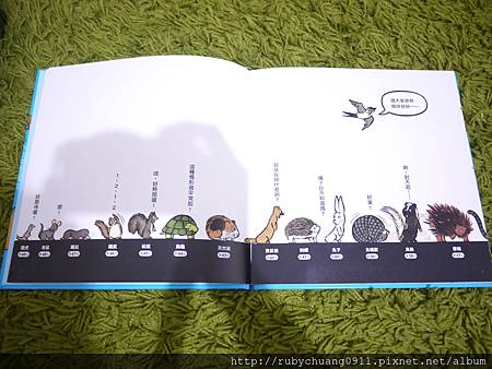 我第一次讀得時候也非常的好奇,有很多種動物,而且是依照體型大小來排序,所以又是堂生物課啦~