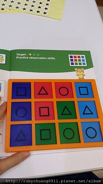 (不過我真的有遇過1歲9個多月的小男生,定性很好,RUBY引導他玩,可以一步一步跟著做,一頁玩完接著要玩下一頁的!!所以基本上還是看孩子的個性!!齊齊太好動了...)