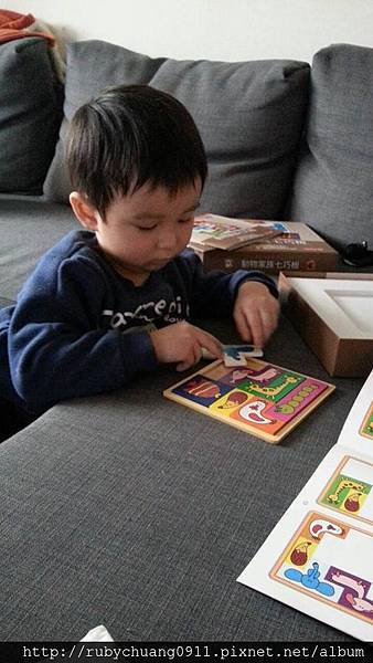 看齊齊玩的多麼專心呀!! 七巧板真是消磨時間的好東西!!