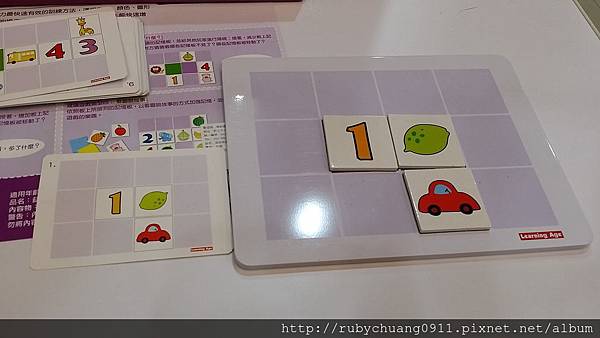 讓孩子依照題目來排列圖案在板子上,其實也是一種練習唷!!