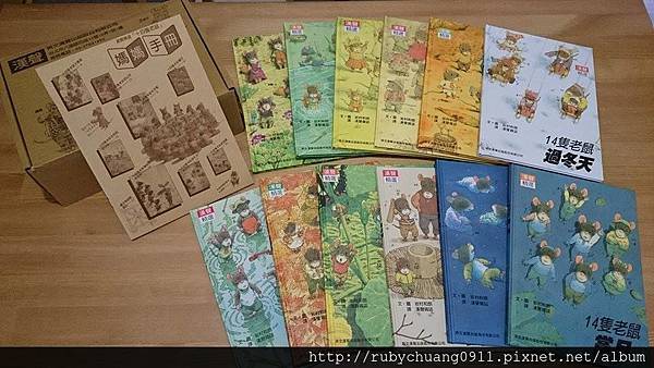14隻老鼠 目前一共有12冊,每一冊的內容都是相當貼近生活的小故事。